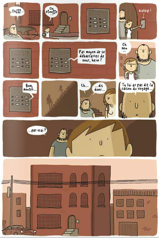 Chose encore plus rare, la temporalité induite est excellente et le découpage en chapitres, non dénué d’humour, car le dessinateur sait profiter de son point de vue omniscient pour faire vivre ses personnages comme il se doit, entre lâcheté et colère, tristesse et consternation : ça peut paraître bête mais tout ces ingrédients usuellement lâchés (souvent de manière anarchique et jusqu’à la nausée) dans les scénarios de très mauvaises comédies dramatiques françaises sont ici déterminant quant à la réussite du récit.