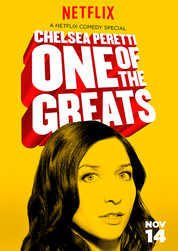 ■ Chelsea Peretti – One of the Greats ■ Sorti le 14 novembre 2014 ■ Réalisé par Lance Bangs ■ Avec Chelsea Peretti, Alex Hirsch (voix-off) ■ Disponible sur Netflix : oui