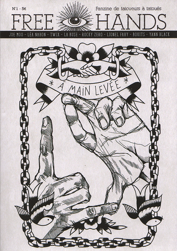 Je vous parle aujourd’hui d’un fanzine qui en a sous le coude de par sa conception et son ambition : il s’agit de Free Hands #1, dédié à l’art du tatouage et à l’expression artistique des artistes tatoueurs.