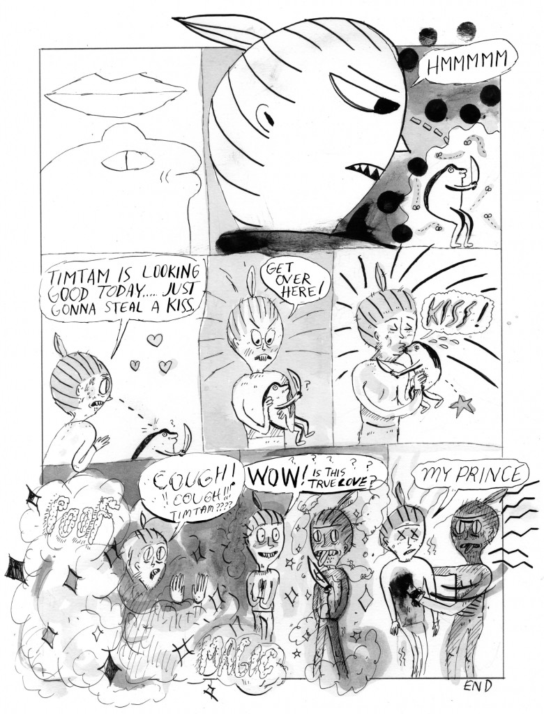 | Une page de la bande dessinée De Liz Hickey. Oui, c’est très cinglé. |