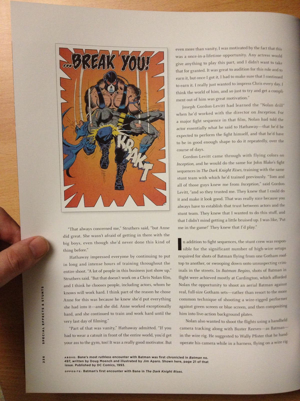 Comme son nom l’indique, The Art and Making of The Dark Knight Trilogy prend l’ensemble des adaptations de Christopher Nolan pour présenter à la fois le défi renouvelé de chaque épisode ainsi que la mesure du chemin parcouru depuis 2005 et la sortie de Batman Begins.