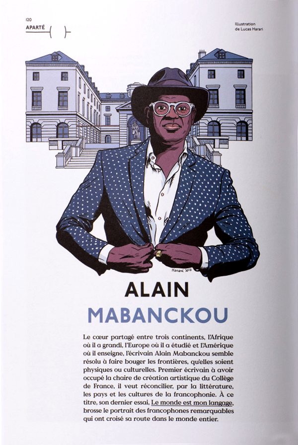 C’est également le cas des personnes étant l’objet d’entretiens,comme Hubert Reeves, Raymond Depardon ou Alain Mabanckou, tandis qu’on trouve un panorama attenant au dossier Galaxies remplis de petites illustrations à se damner, sans oublier les portfolios, ou le portrait de Jeanne Baret qui habille les écrits de Michelle Kahn. Et c’est oublier la surprenante double page centrale qui représente la thématique de la revue, en opposition à la couverture, qui semble plus lointaine, comme une périphérie astéroïdale…