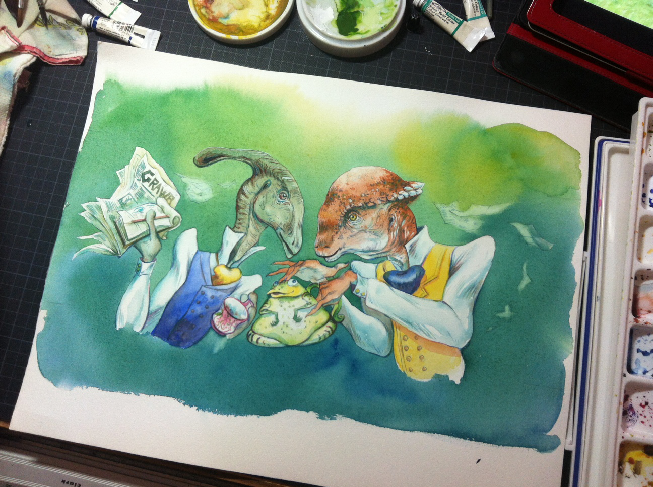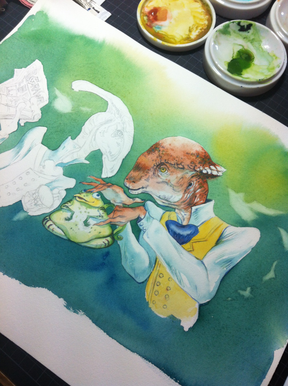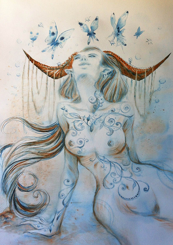 Après ce work in progress, je suis sûre que vous désirez en savoir plus sur notre collaboratrice, Marine Tumelaire, qui manie avec délicatesse l’aquarelle pour illustrer son univers allant de l’onirique fantastique à la science-fiction.